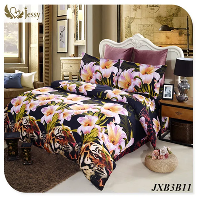 Best Price 3D Bedding Set Flowers and Tiger Print Bed Sheet Set Bed Linen Duvet Cover Pillowcase Queen King Size Bedding Cover Bedclothes